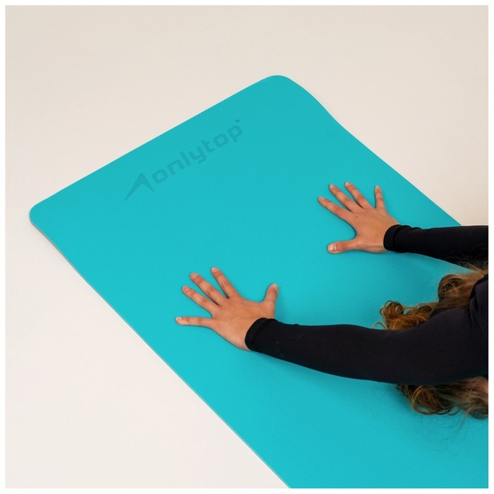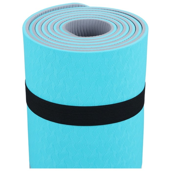 Коврик для фитнеса и йоги ONLYTOP, 183х61х0,6 см, цвет серый/голубой