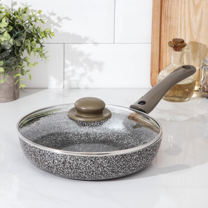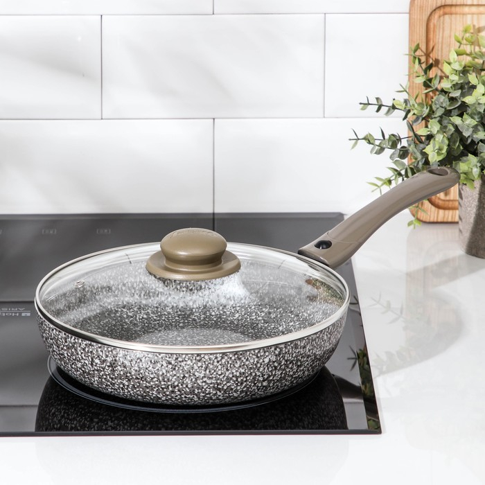 Сковорода Onyx, d=24 см, съёмная ручка, стеклянная крышка, антипригарное покрытие, цвет серый
