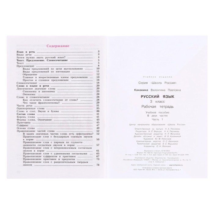Рабочая тетрадь «Русский язык», 3 класс, в 2-х частях, часть 1, 2023, Канакина В. П.
