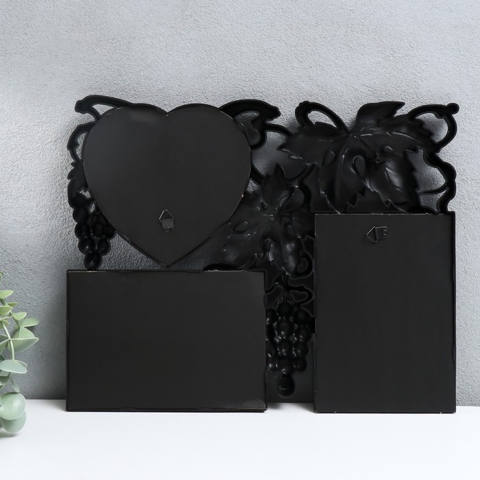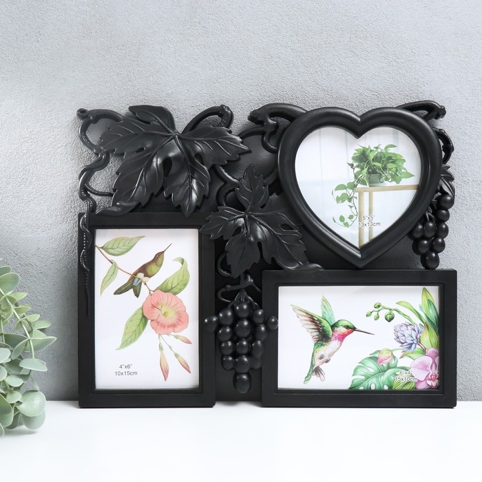 Фоторамка пластик на 3 фото 10х15, 11х12 см "Виноград" чёрный 25,5х32 см