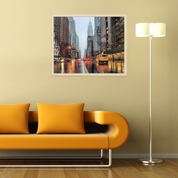 - Рисунок напечатан на грунтованном холсте, прикреплённом к деревянному подрамнику, за счёт чего картину будет легко зацепить за шуруп или гвоздь.