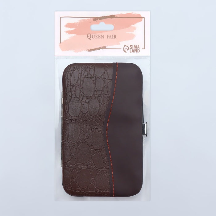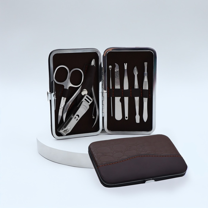 Набор маникюрный, 8 предметов, в футляре, цвет коричневый