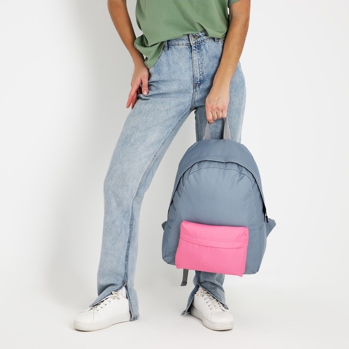 Рюкзак школьный текстильный с цветным карманом, 30х39х12 см, цвет серый/розовый