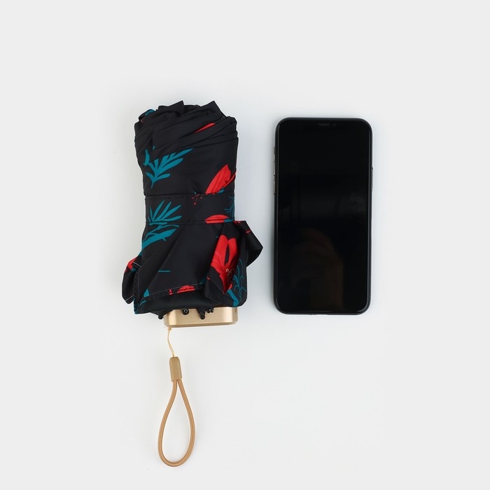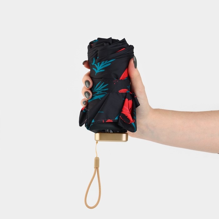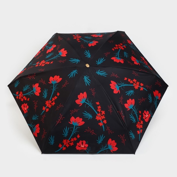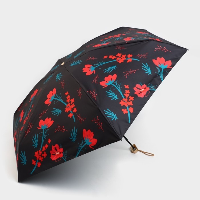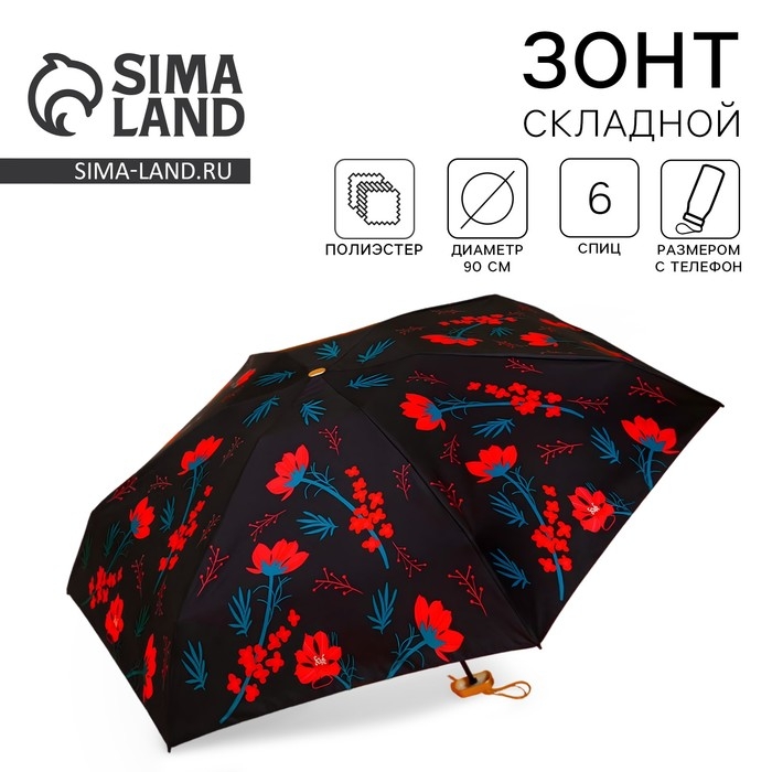 Зонт женский «Красные цветы», 6 спиц, складывается в размер телефона.