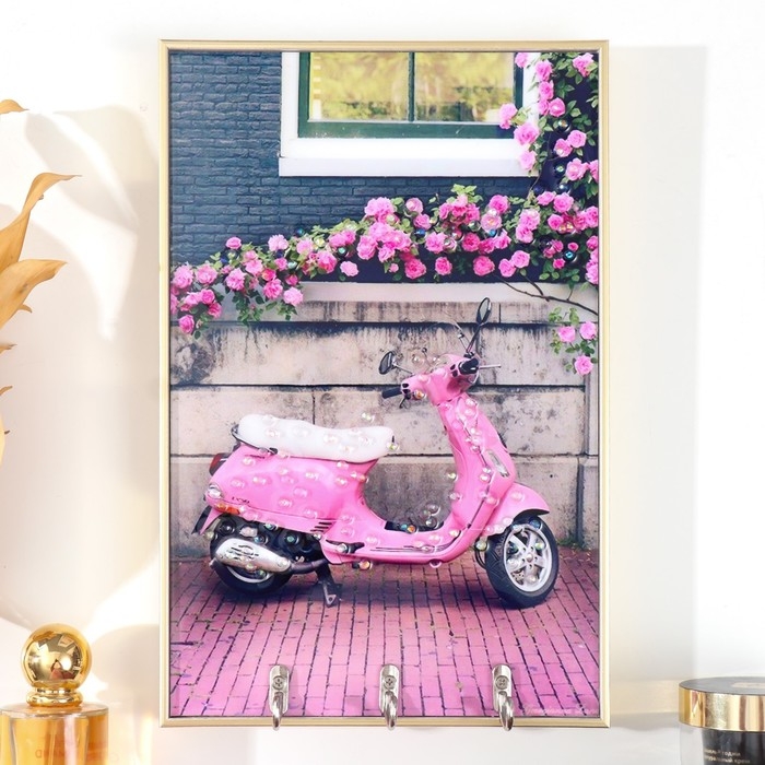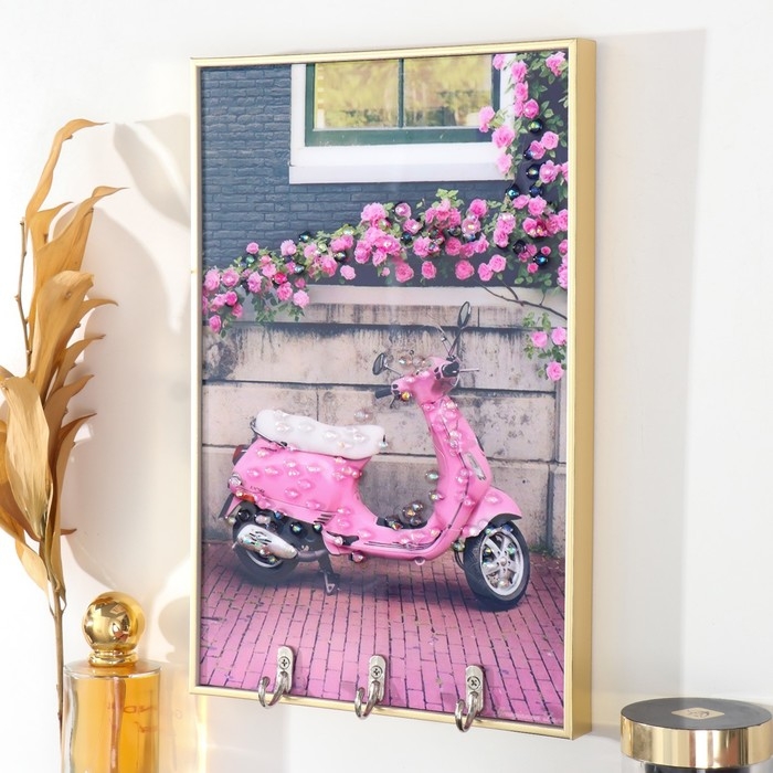 Ключница пластик, МДФ 3 крючка "Гламурный скутер" стразы, золото 19,3х1,8х29 см