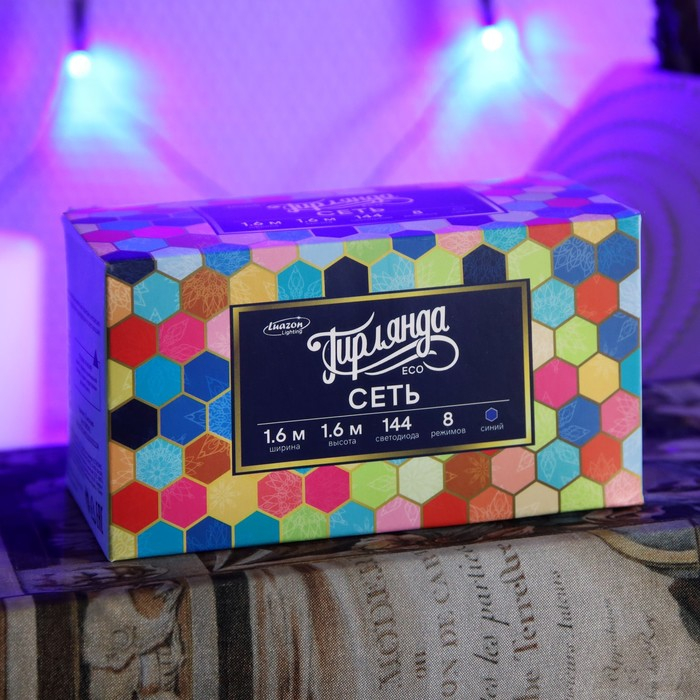 Гирлянда «Сеть» 1.6 × 1.6 м, IP20, тёмная нить, 144 LED, свечение синее, 8 режимов, 220 В