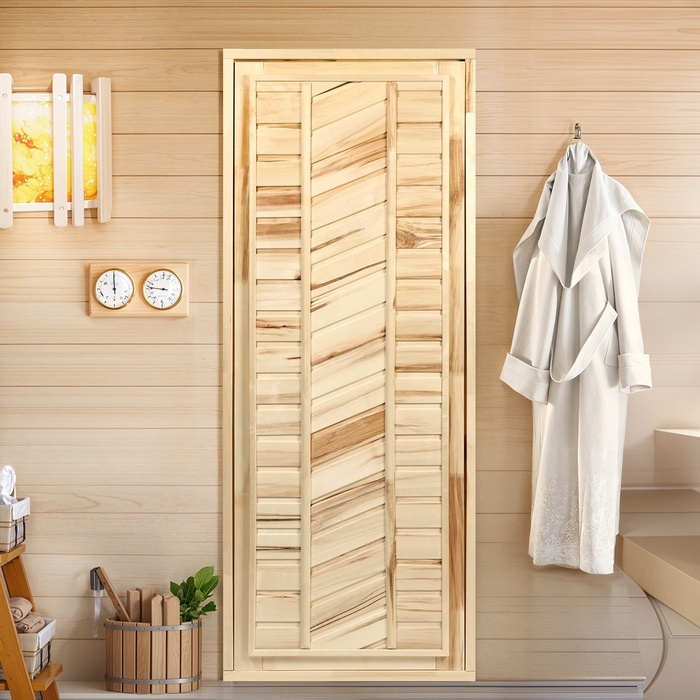 Дверной блок для бани, 170×70см, из липы, на клиньях, массив, "Добропаровъ"