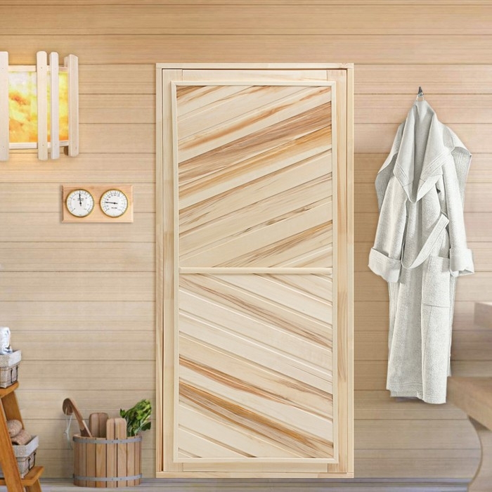 Дверь для бани и сауны, размер коробки 170х80 см, универсальная, липа
