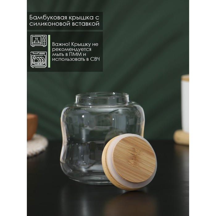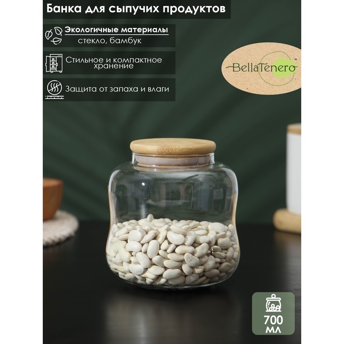 Банка стеклянная для хранения сыпучих продуктов BellaTenero «Эко. Изгиб», 700 мл, 10,5×11,5 см, с бамбуковой крышкой