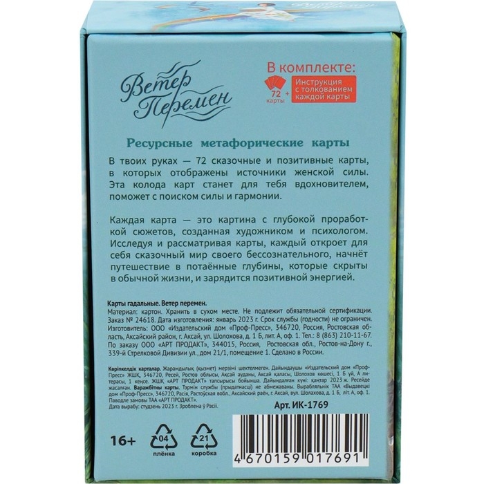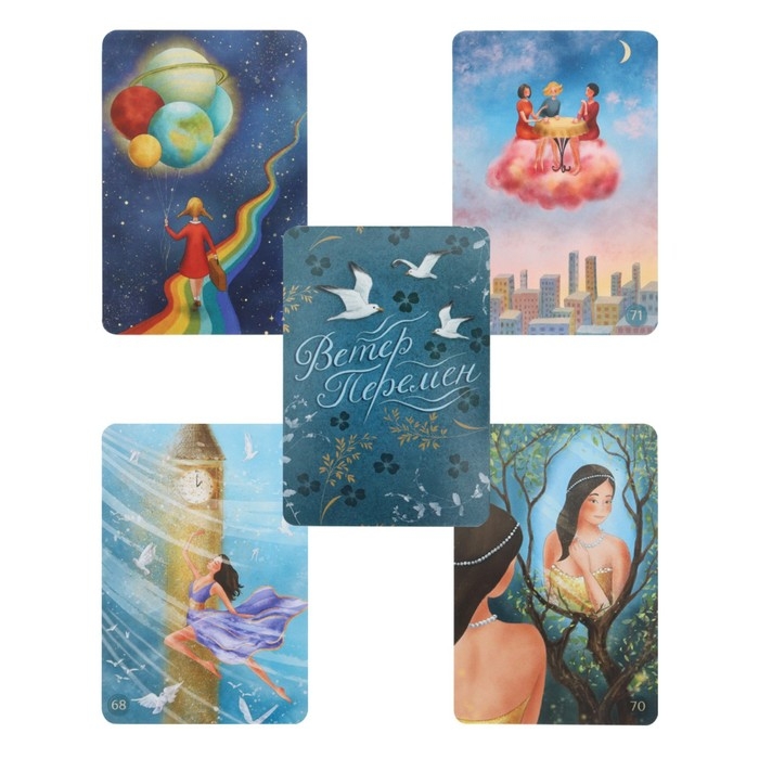 Метафорические ассоциативные карты МАК "Ветер перемен" Эта колода ресурсных метафорических карт станет вдохновителем, поможет с поиском силы и гармонии. Все изображения с глубокой проработкой сюжетов созданы художником и психологом. Исследуя и рассматривая карты, каждый откроет для себя сказочный мир своего бессознательного, начнёт путешествие в потаённые глубины, которые скрыты в обычной жизни, и зарядится позитивной энергией.