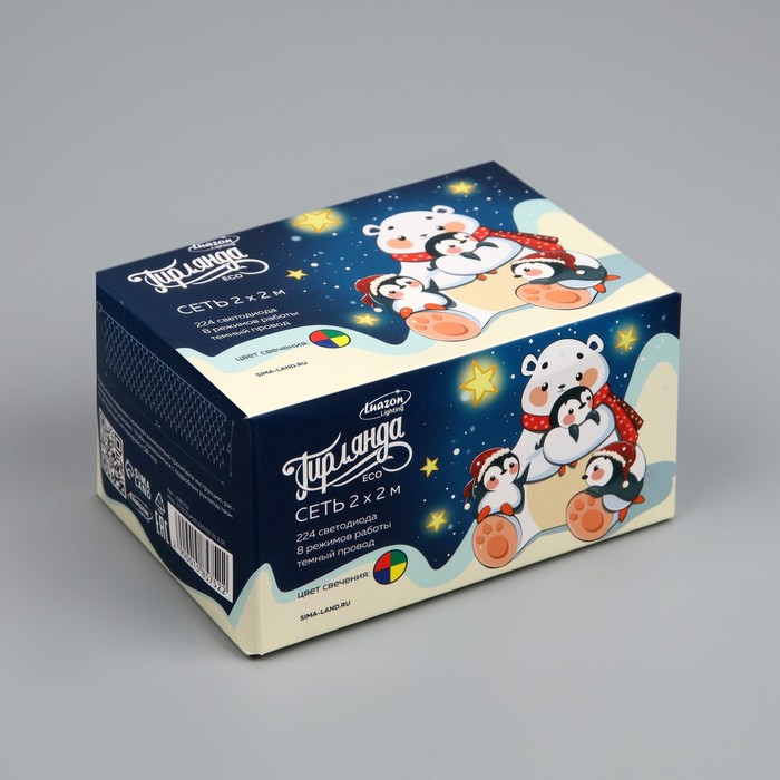 Гирлянда «Сеть» 2 × 2 м, IP20, тёмная нить, 224 LED, свечение мульти, 8 режимов, 220 В
