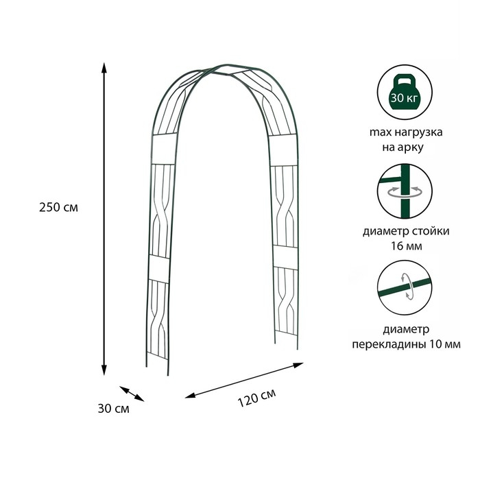 Арка садовая, разборная, 250 × 120 × 30 см, металл, зелёная