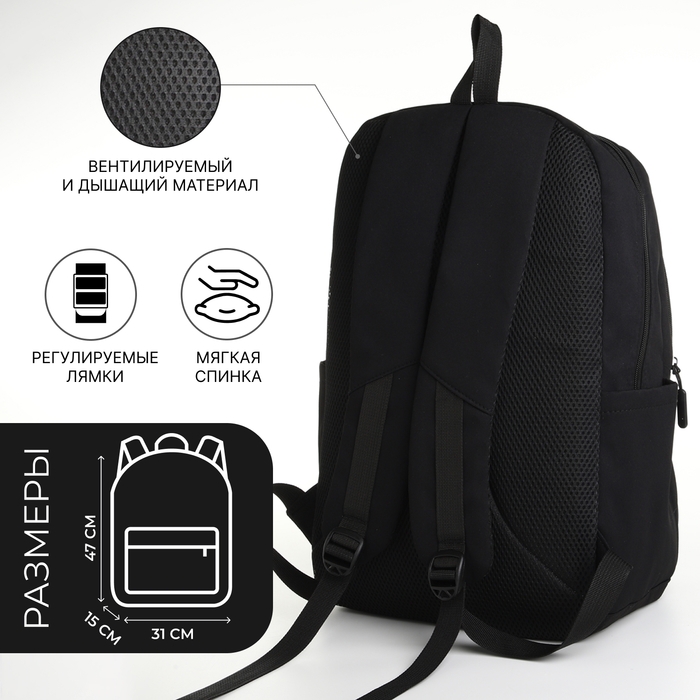 Рюкзак школьный из текстиля на молнии, 2 отдела, 3 кармана, цвет чёрный