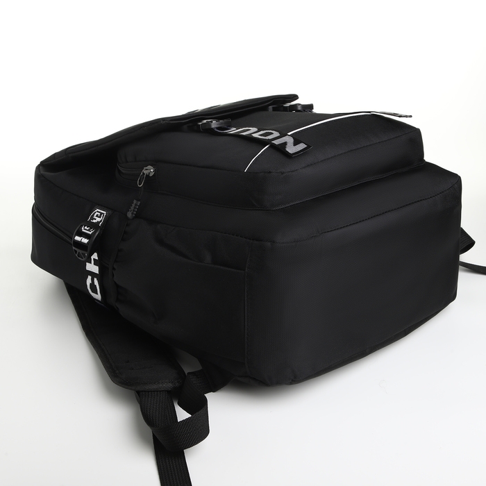 Рюкзак школьный на молнии, 2 наружных кармана, цвет чёрный