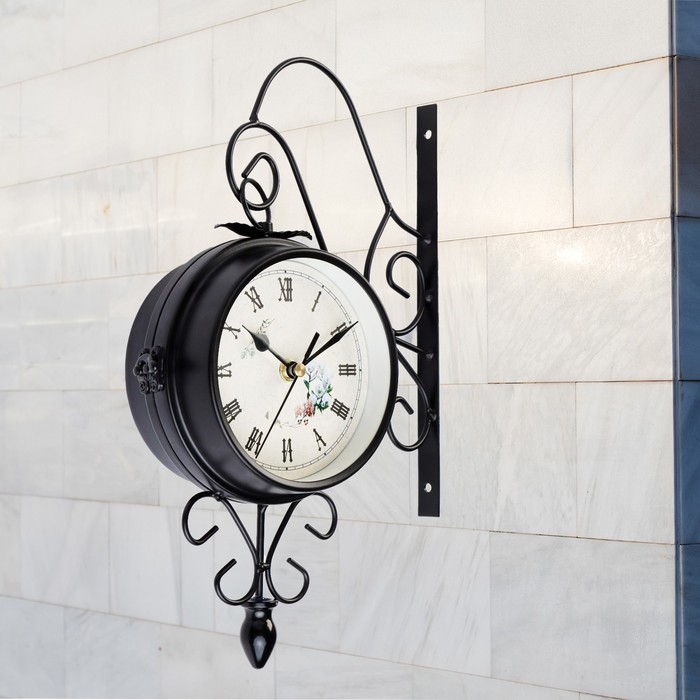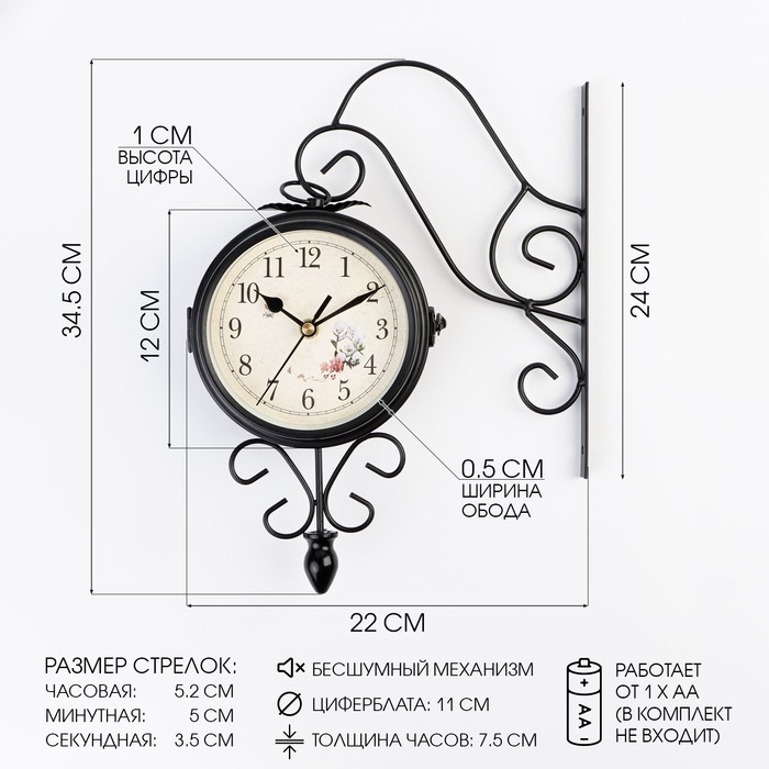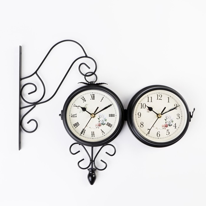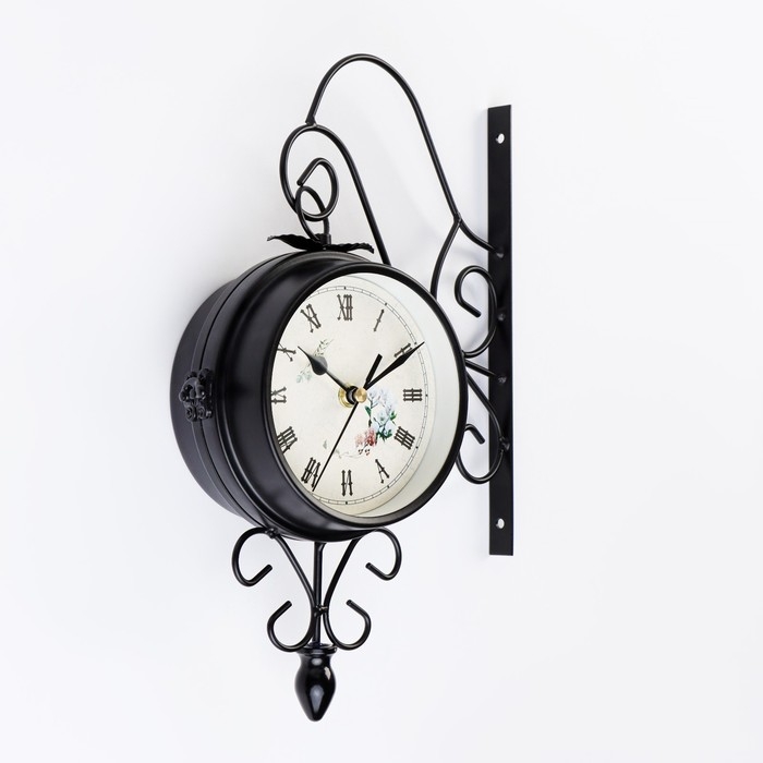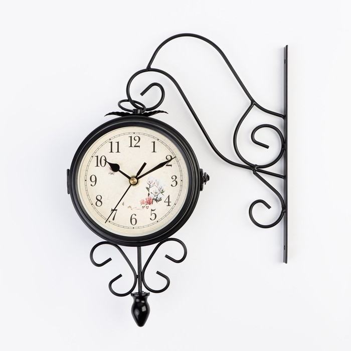 Часы настенные двусторонние, на подвесе "Весенние", плавный ход, d-11 см, 34.5 х 22 см
