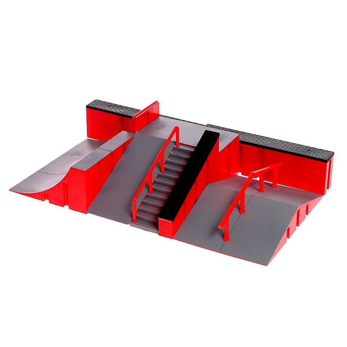 - Комплектация включает в себя комплекс трамплинами, лестницей и перилами, которые расширяют границы возможностей для трюков и маневров.