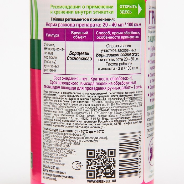 Средство от сорняков ГРАНТ, 250 мл