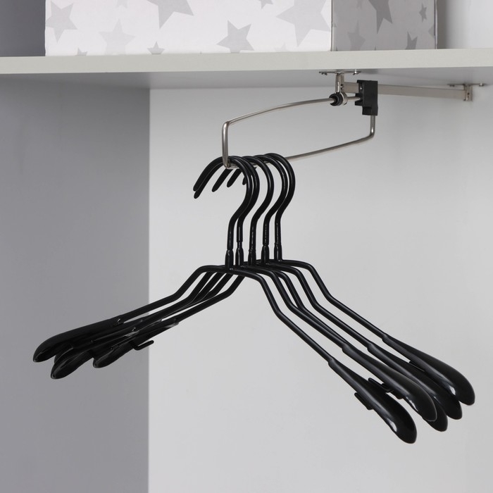 Плечики - вешалки для одежды Доляна, 39×20,5 см, 5 шт, антискользящее покрытие, цвет чёрный