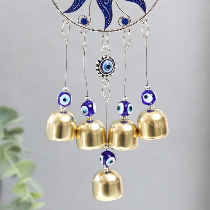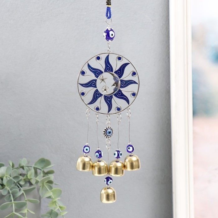 Музыка ветра металл "Месяц в солнце" от сглаза 5 колокольчиков 22 см