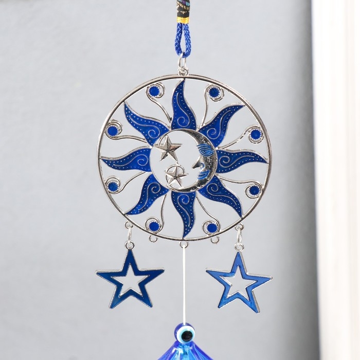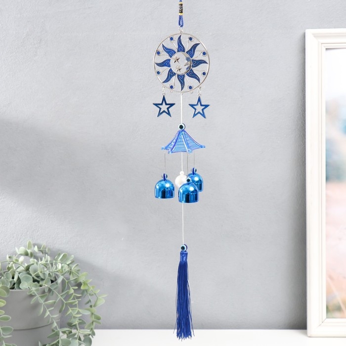 Музыка ветра металл "Месяц в солнце со звёздами" с кисточкой 3 колокольчика 43 см