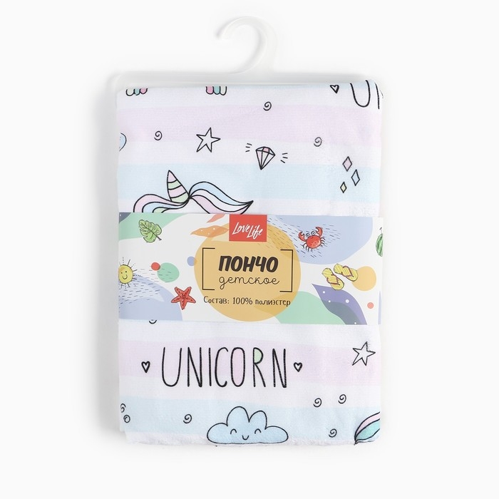 Полотенце-пончо детский LoveLife "Единороги" 60х120 см, 100% пэ, 225 г/м2