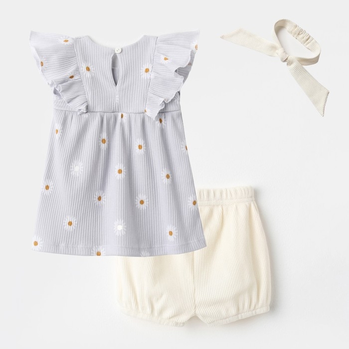 Комплект: платье, шорты, повязка Крошка Я Ромашка, рост 62-68 см, серый