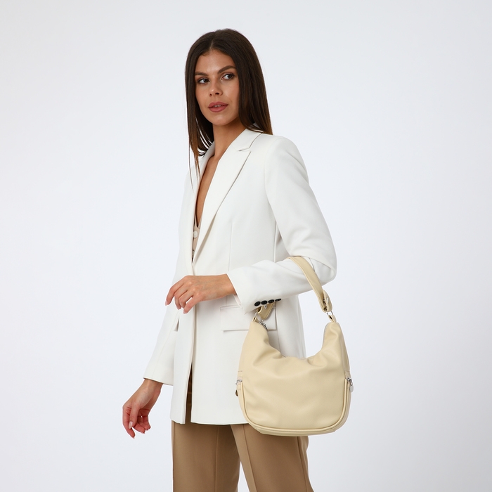 Сумка-мешок на молнии, наружный карман, цвет бежевый