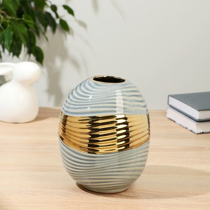 Ваза керамика настольная "Вивьен" d-5,5х11 см h-17,5 см, золотисто-голубой