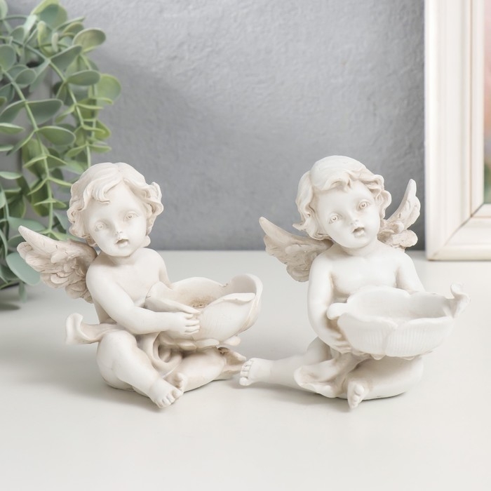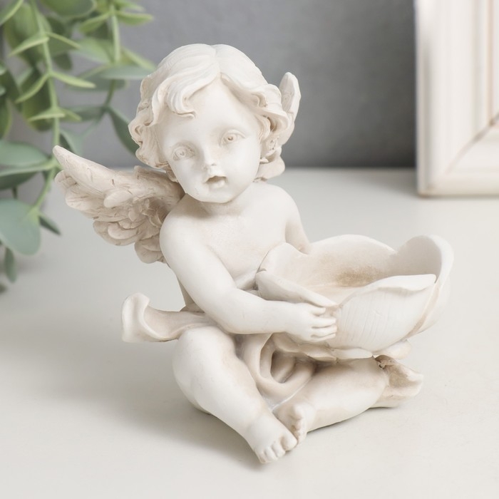 Сувенир полистоун подсвечник "Ангелочек с цветком" МИКС 10х8,2х9,2 см