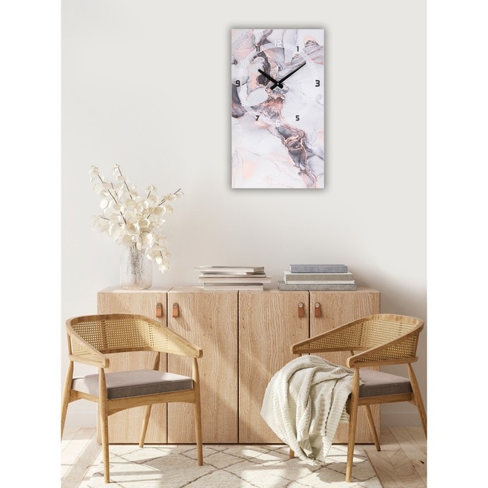Часы-картина настенные, интерьерные "Белый мрамор", 35 х 60 см, на холсте, бесшумные