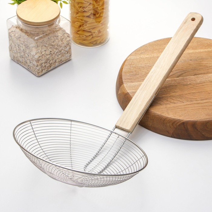 Шумовка для фритюра из нержавеющей стали, 53×20 см, толщина 3 мм, 201 марка стали