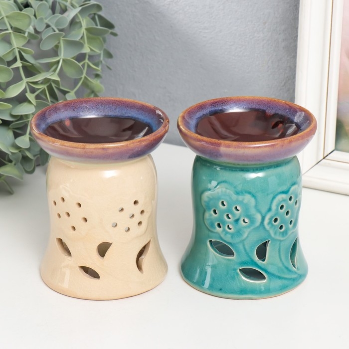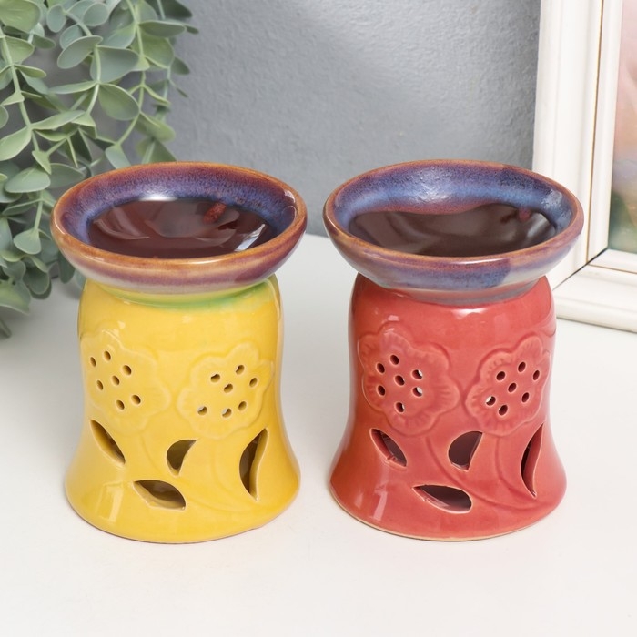 Аромалампа керамика "Цветы на полянке" МИКС 9,5х9,5х11,5 см