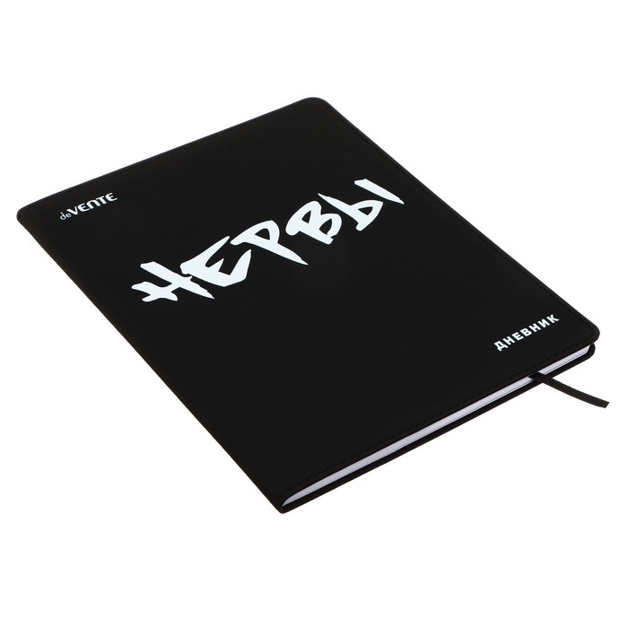 Дневник "deVENTE. НЕРВЫ", универсальный блок, офсет 1 краска, белая бумага 80 г/м2, гибкая обложка из искусственной кожи, шелкография, отстрочка, 1 ляссе.