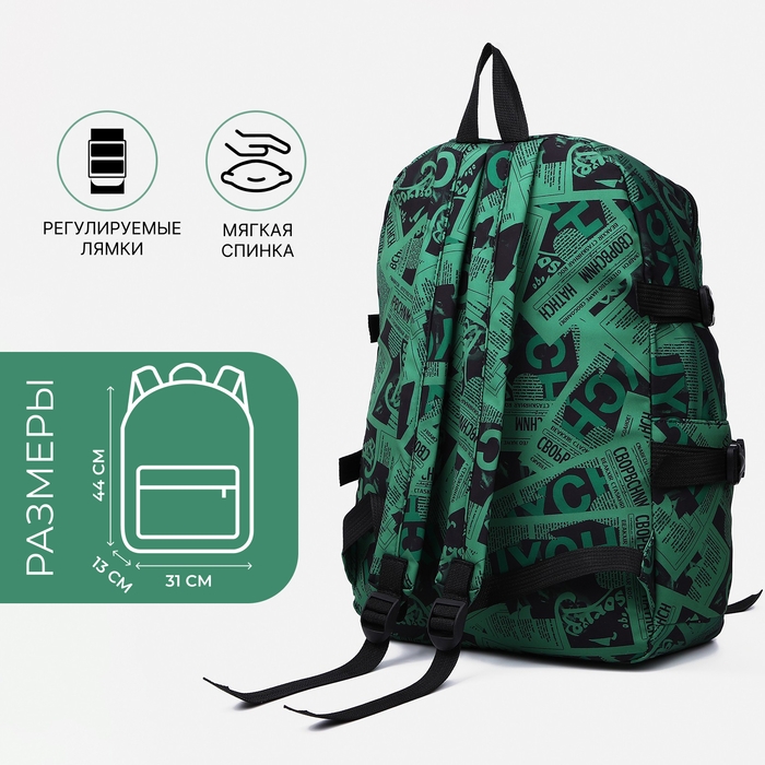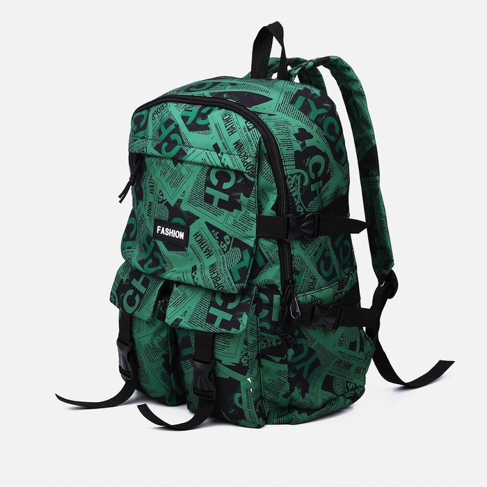 Рюкзак молодёжный из текстиля на молнии, 3 кармана, цвет зелёный