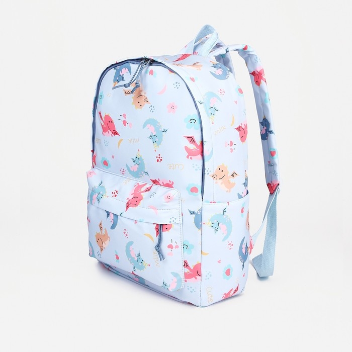 Рюкзак школьный из текстиля на молнии, наружный карман, цвет голубой