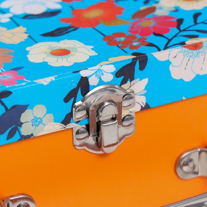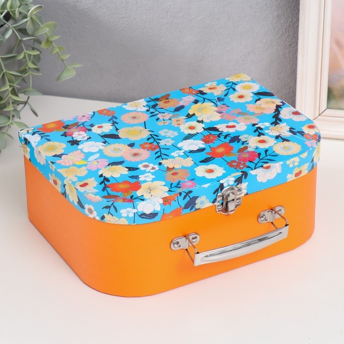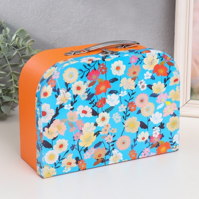 Шкатулка картон сундучок "Цветы на синем" 25х10х18,5 см