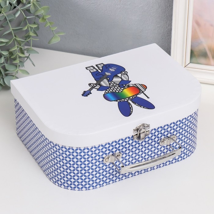 Шкатулка картон сундучок "Заяц-робот с гитарой" 25х10х18,5 см