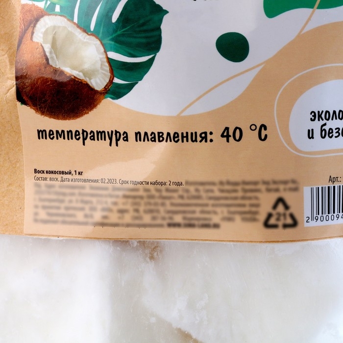 Наш кокосовый воск имеет оптимальную температуру плавления в 52 градуса, что обеспечивает его легкое использование и формование. Вы сможете создавать свечи различных форм и размеров, придавая им индивидуальный стиль и дизайн.