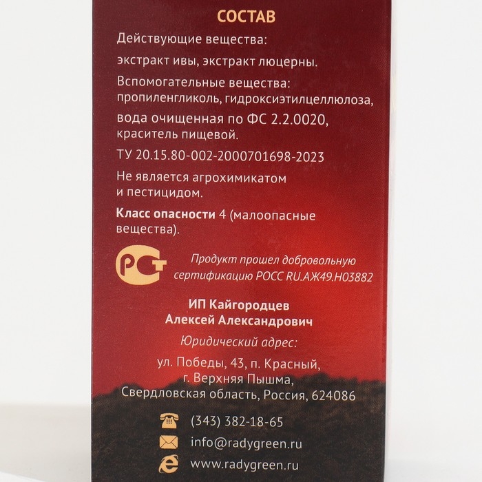 Действующие вещества: экстракт ивы, экстракт люцерны
