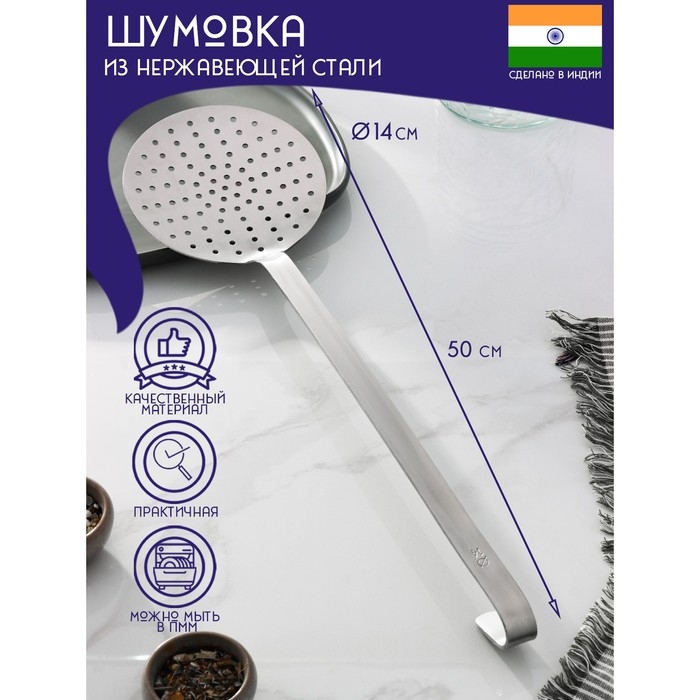 Шумовка цельнотянутая из нержавеющей стали Доляна «Индия» 50×14 см, толщина 3 мм