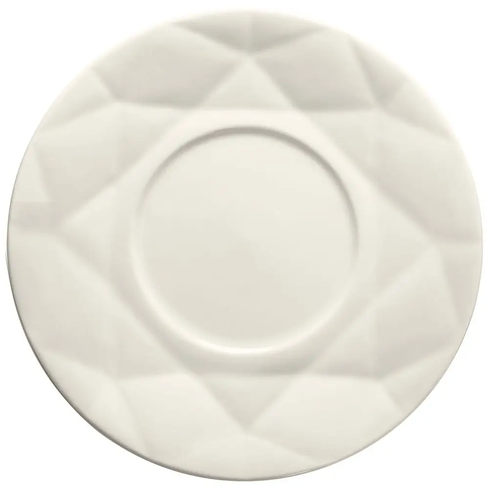 Линейка столовой посуды Diamante Bianco — настоящий бриллиант коллекции Altavolo. Структура и пропорции граней блюдца в точности повторяют верхнюю часть бриллианта классической огранки — корону. Присмотритесь — и вы увидите, как играет свет на молочно-белом фарфоре.Емкость чашки 220 мл.
