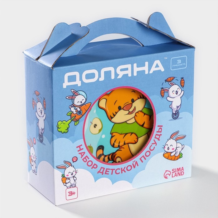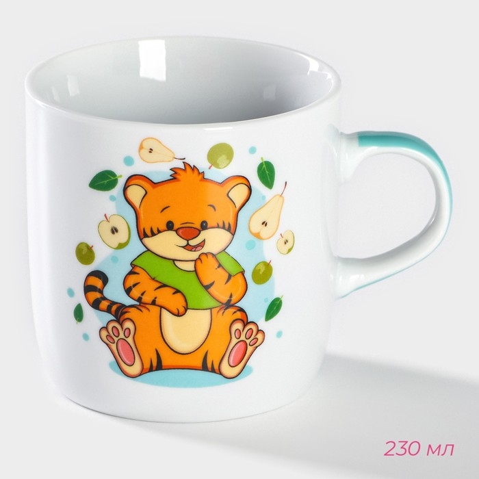 Набор детской посуды из керамики Доляна «Тигрёнок с грушами», 3 предмета: кружка 230 мл, миска 400 мл, тарелка d=18 см, цвет белый