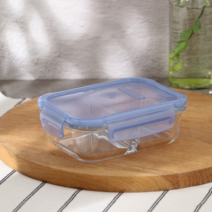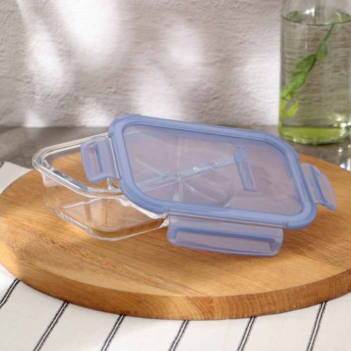 Контейнер из жаропрочного стекла, с крышкой, 600 мл, цвет синий