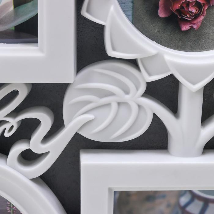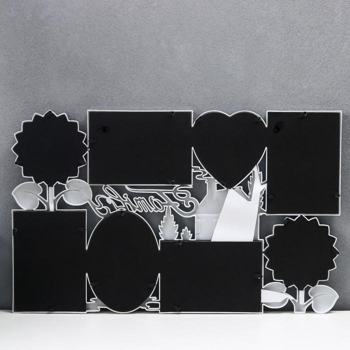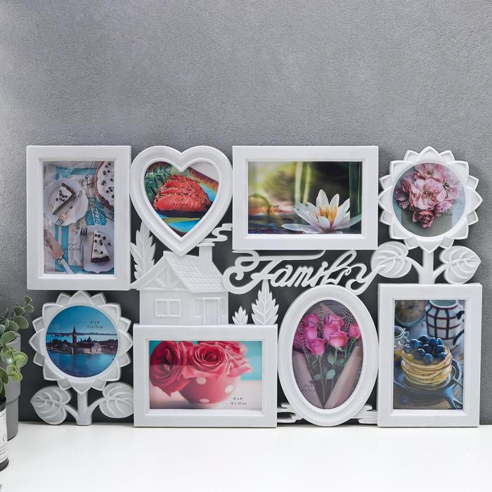 Фоторамка пластик на 8 фото 10х10 см, 10х15 см "Семейный дом" белая 56,5х35 см