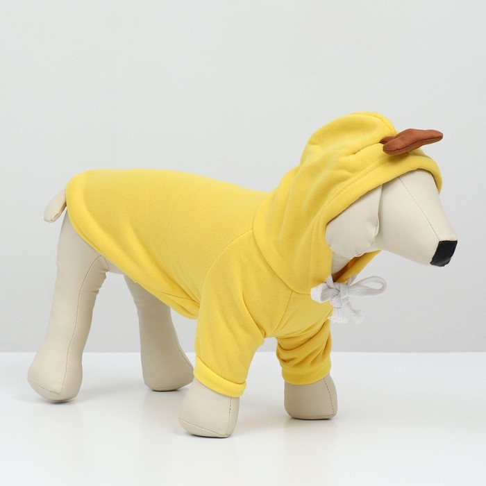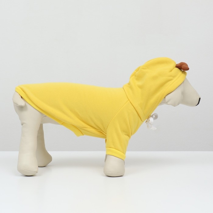Она выполнена из мягкого и приятного на ощупь материала, который обеспечивает комфорт и тепло в холодную погоду. Капюшон в виде банана придает милый образ вашему питомцу, а благодаря завязкам можно регулировать размер капюшона, это обеспечивает дополнительную защиту от холода и ветра.