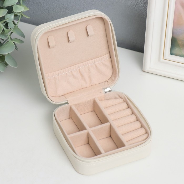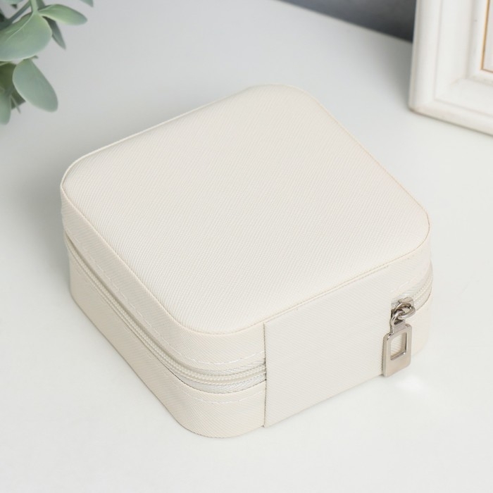Шкатулка кожзам для украшений "Элегия. Квадратная" белый 5х10х10 см