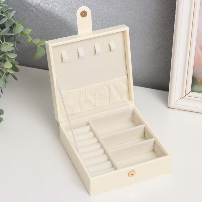Шкатулка кожзам для украшений "Идилия. Квадратная" белый 5х12х12 см