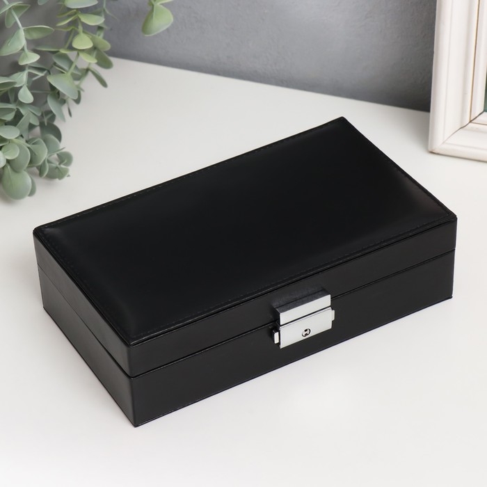 Шкатулка кожзам для украшений "Чёрная матовая" 6,5х12,6х21 см