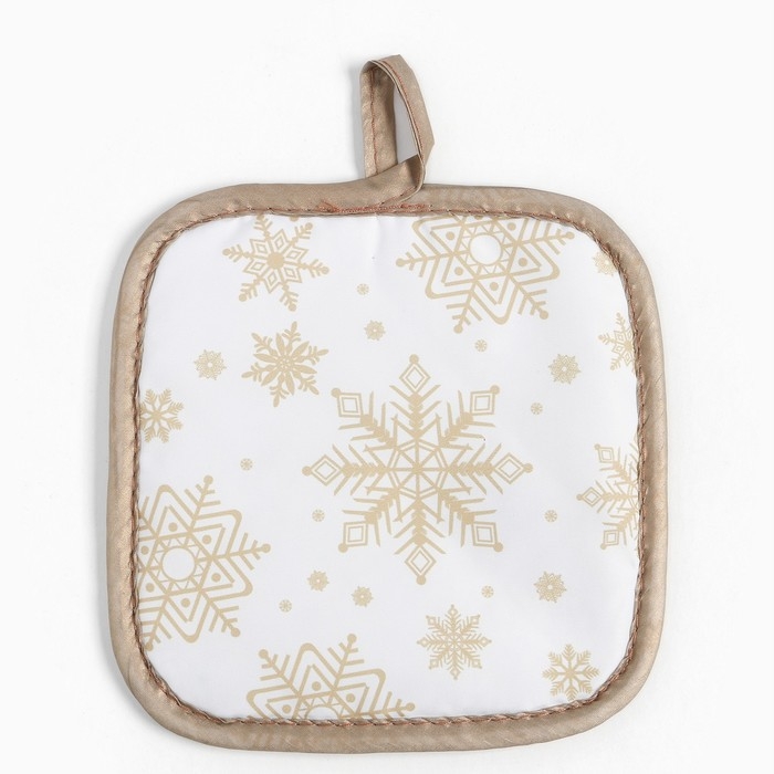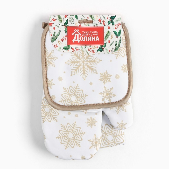 Кух. набор Доляна Снежинки золотые прих.17*17 см, вареж.26*16 см,фарт.70*80 см 100% п/э