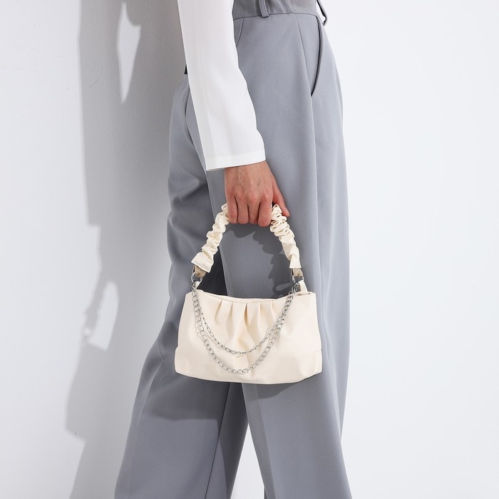 Сумка-багет на молнии, цвет молочный